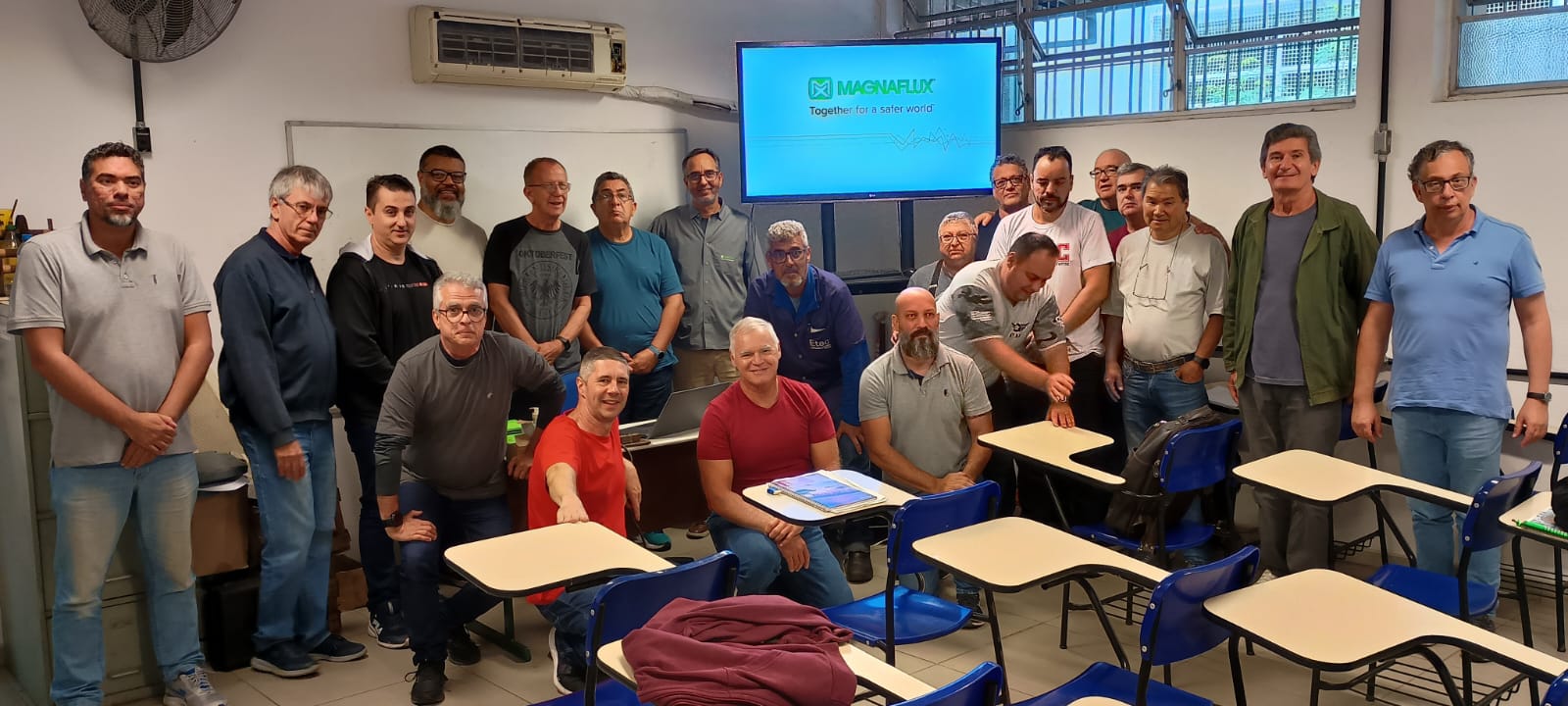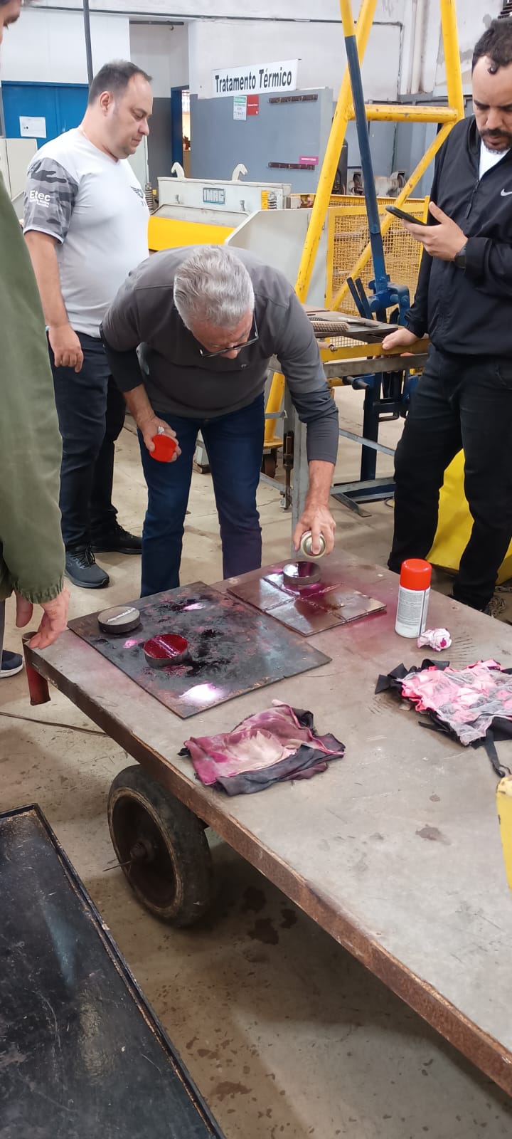 A metodologia combinou exposições teóricas com demonstrações práticas, utilizando equipamentos especializados que permitiram aos participantes vivenciar procedimentos aplicados na indústria. O evento contou com a colaboração do professor Celso Massahiro e de Marcelo Neris, especialista da empresa Magnaflux, que compartilhou sua experiência como profissional Nível 3 em END.