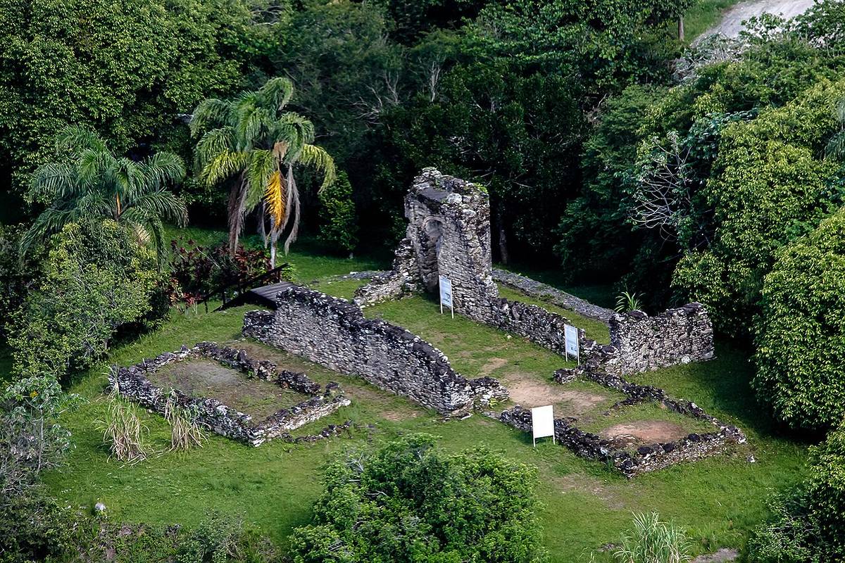 Minicidade com construções temáticas, banco de areia, casa do Tarzan e muito mais.