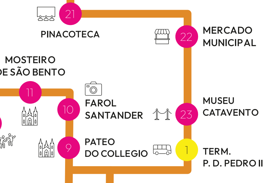 Circuito Cultura: com início no Term. Parque D. Pedro II e indo até o Parque da Luz. Um passeio pela história de São Paulo, ligando a Estação da Luz e o Museu da Língua Portuguesa a pontos icônicos como o Mercadão, o Pateo do Collegio, o Theatro Municipal, a Pinacoteca, a Praça da República e os bairros da Liberdade e do Bixiga.