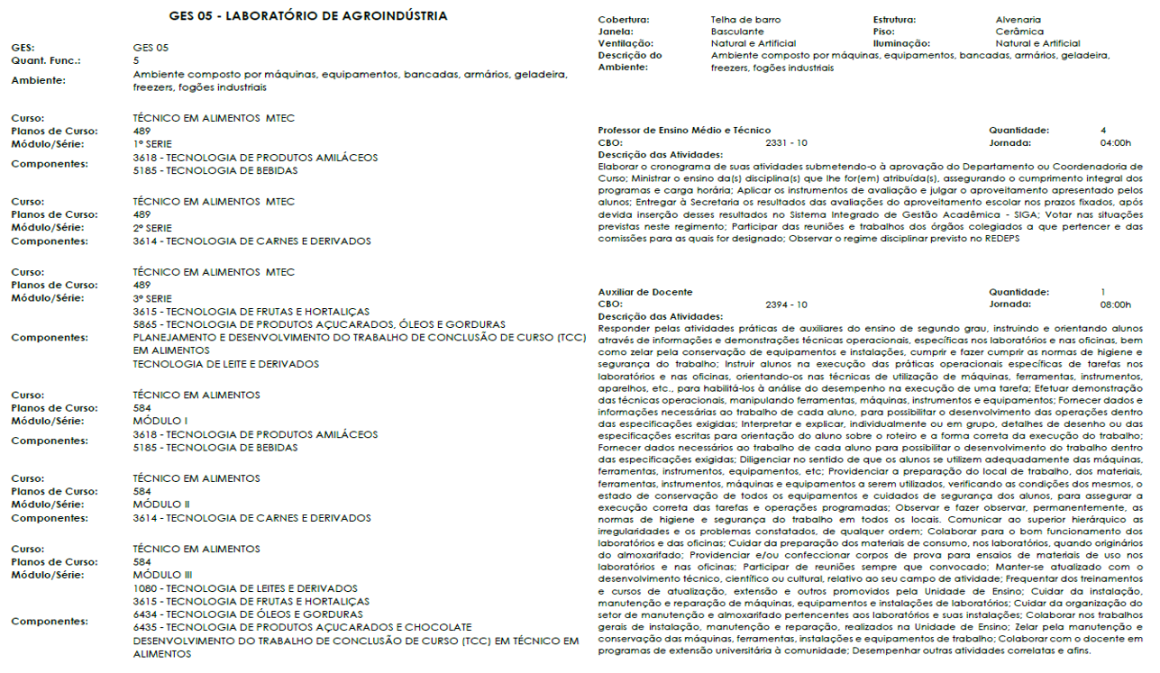 Na sequência, há a descrição dos Grupos de Exposição Similar (GES). Cada GES é a representação do ambiente de riscos. Se for uma área de apoio (administrativa, operacional, etc.), há a descrição do local, cargos / funções envolvidas, quantidade de pessoas e demais detalhes. Se for uma área de ensino, traz também os planos de curso e os componentes curriculares de cada curso do respectivo GES. Se a escola tiver salas descentralizadas, geralmente são representadas como GES.