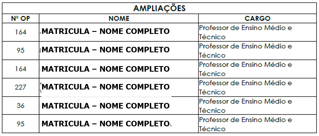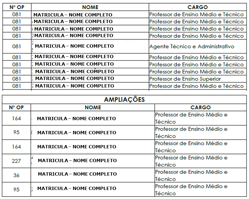 A Figura 14 demonstra uma relação de agentes públicos próprios e uma de ampliação.