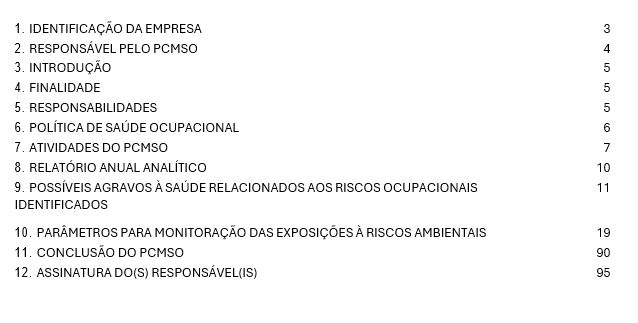 “Sumário do PCMSO: