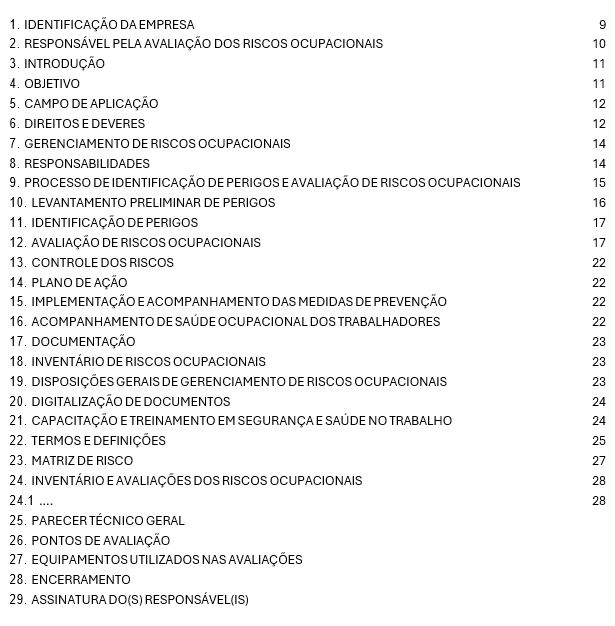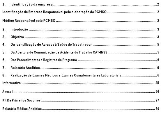 Esta é uma amostra resumida do PGR na versão emitida pela empresa Aclimed.