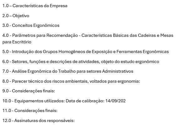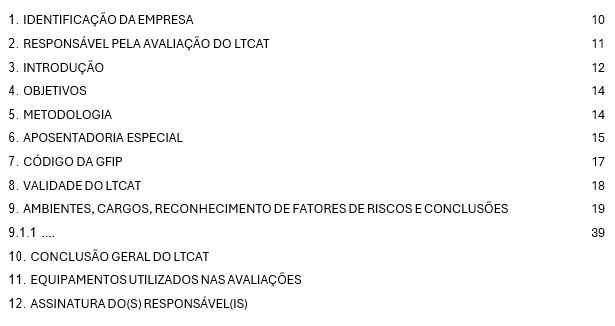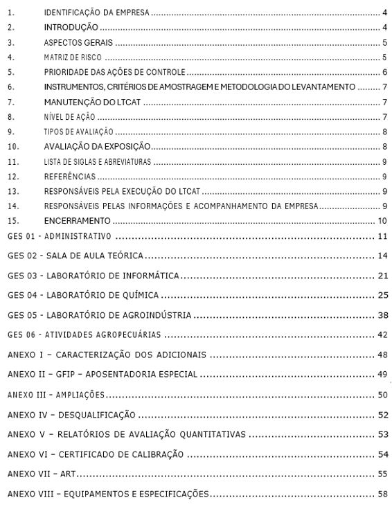 Um LTCAT emitido pela Ambiental tem a seguinte estrutura padronizada:
