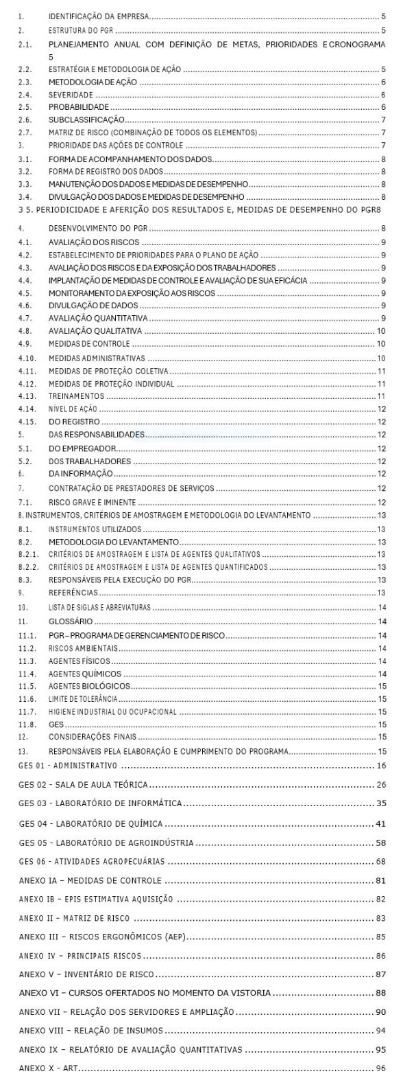 Sumário do PGR: