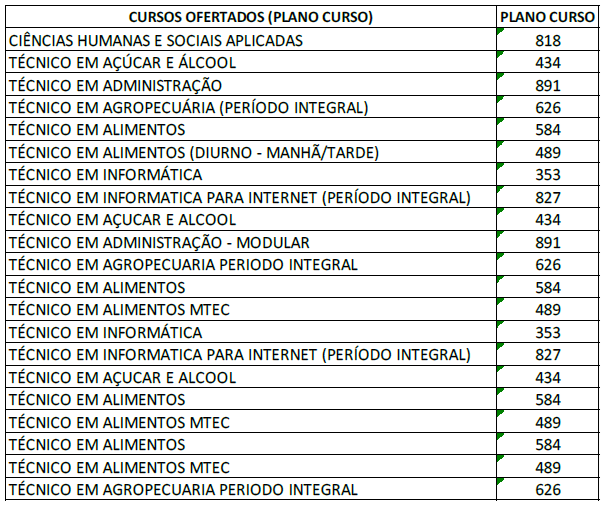 Neste caso as colunas referentes ao curso e componentes curriculares não são preenchidas.