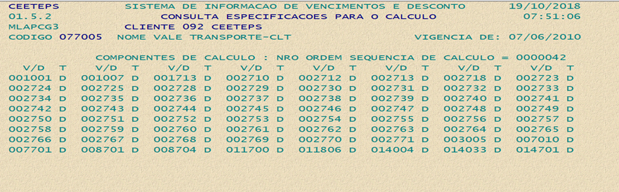 | Valor Descontado do Servidor | VD 077005 | 75,60 |