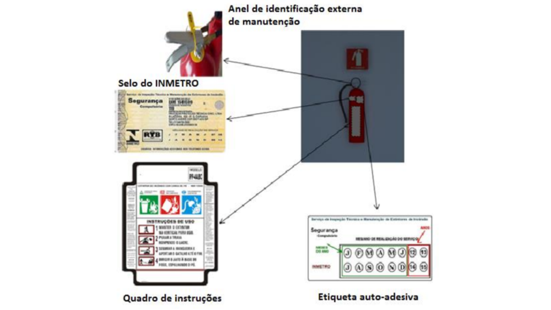 A ideia é saber o tipo de combustível da sala e os extintores adequados mais próximos. O rótulo também tem instruções de uso do extintor – importante lê-las nesta fase de reconhecimento.